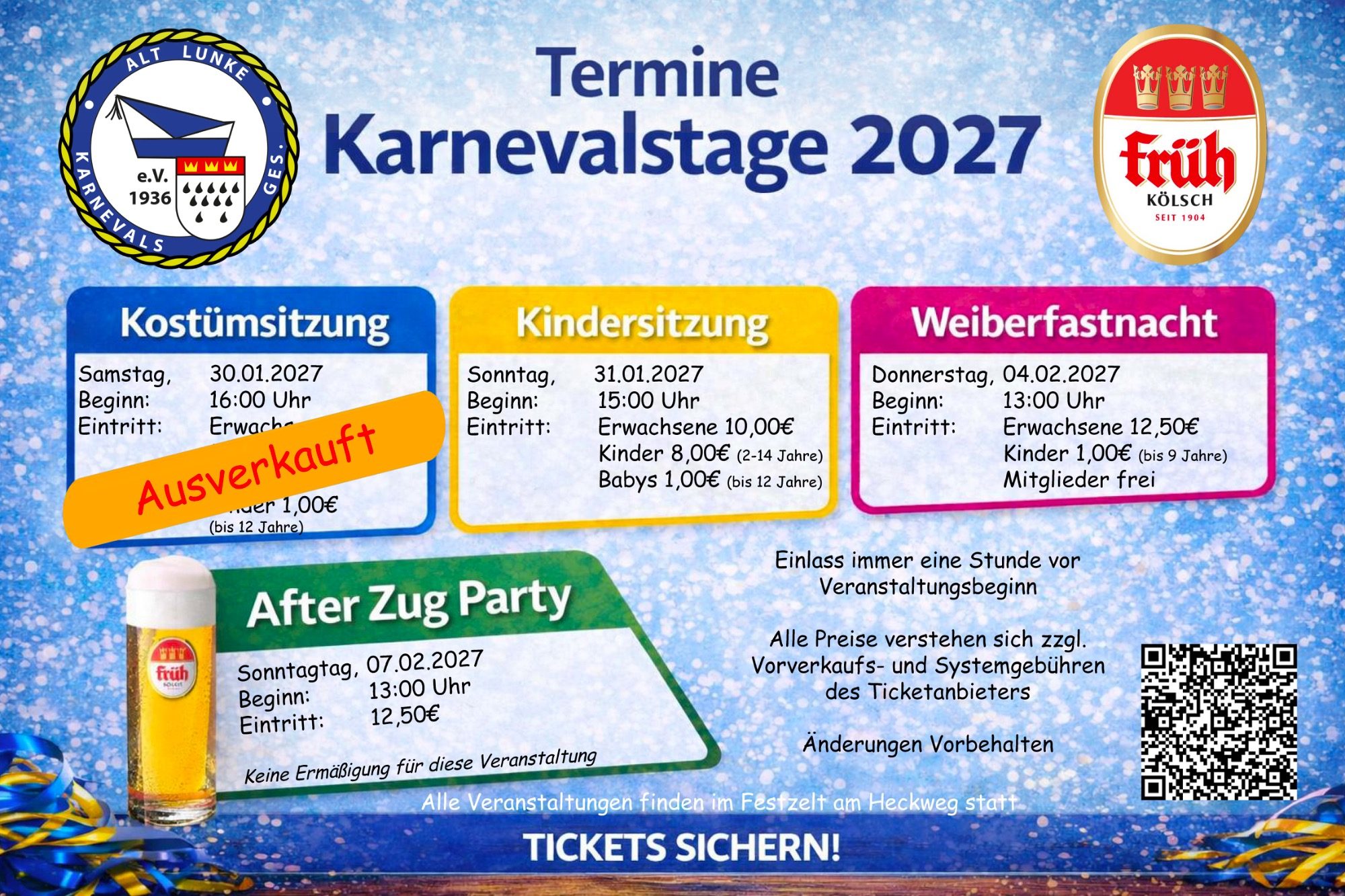 Unsere Veranstaltungen reichen von unsere Kostümsitzung über Kindersitzungen für groß und klein bis hin zur After Zoch Party.